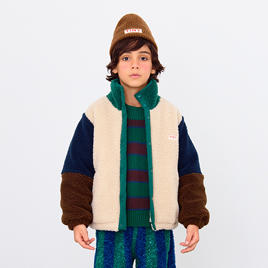 TINYCOTTONS / COLOR BLOCK POLAR SHERPA JACKET / dark green