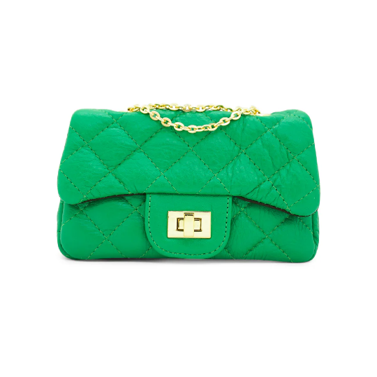 ゴールドのチェーンが付いたキルティングレザーバッグ。