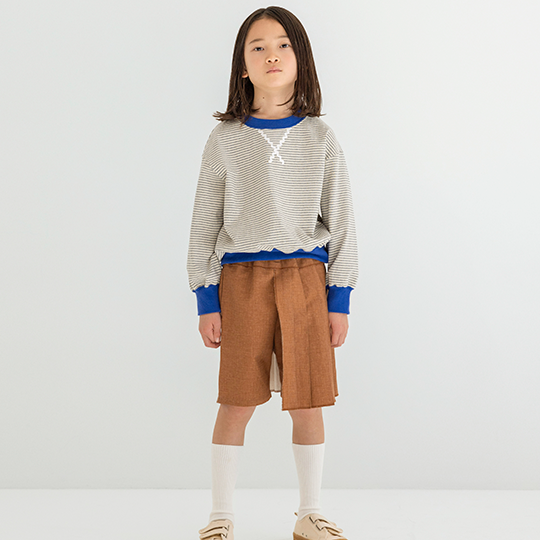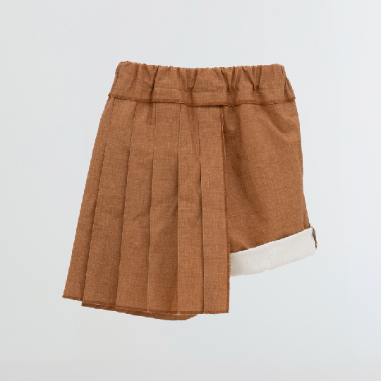 folk made / Pleats short pants / brown
