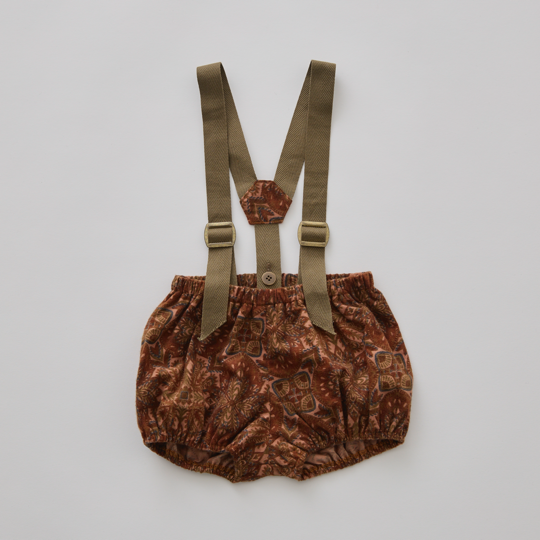 eLfinFolk / Snow Crystal Printed Suspenders Bloomers / teracotta