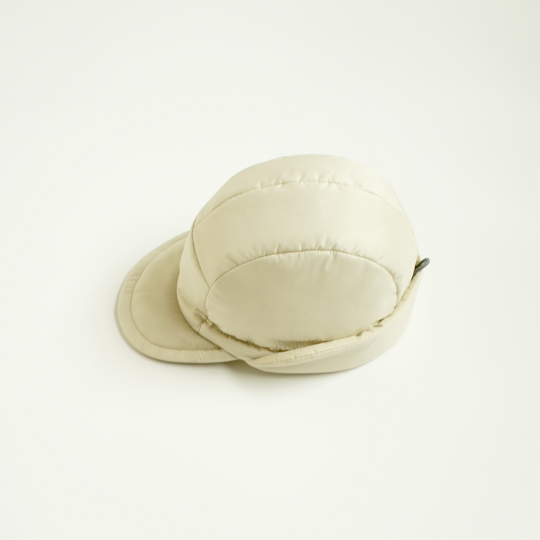 保温性のある中綿入り、折り返せる耳当て付きで、とても軽く暖かいキャップです