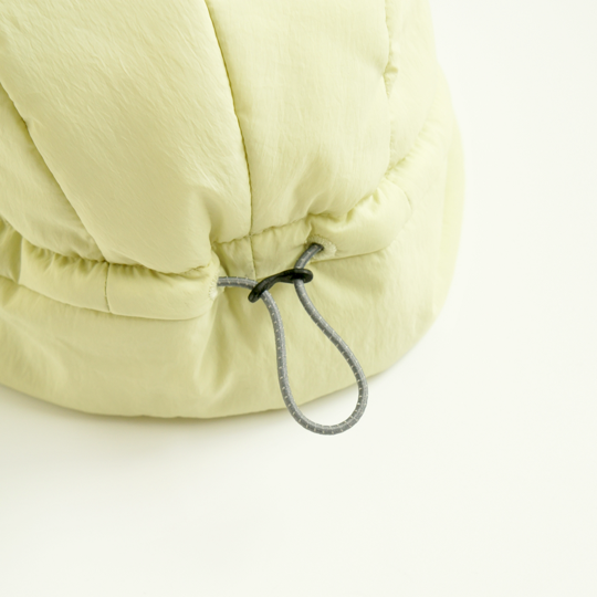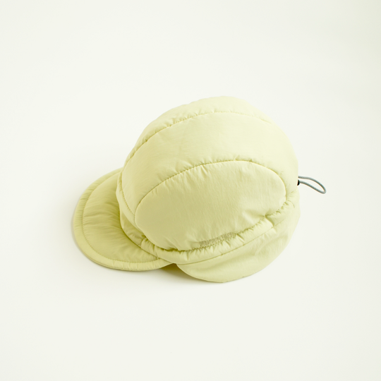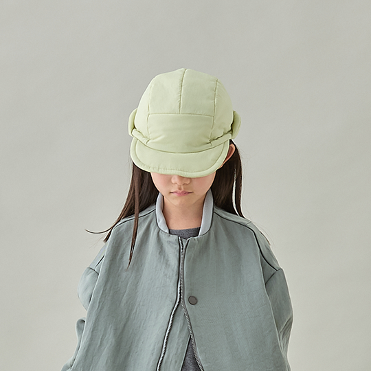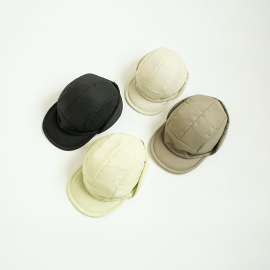 保温性のある中綿入り、折り返せる耳当て付きで、とても軽く暖かいキャップです