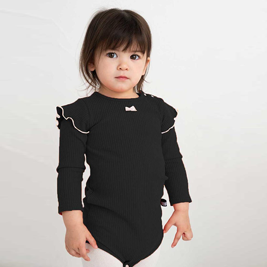 伸縮性の良いリブ素材で着心地・気易さが抜群で、洗濯にも強い素材です。肩のフリルがとってもかわいい女の子用肌着で。 袖口についたフリル裾のバイカラーのメロウ始末がかわいいですね☆