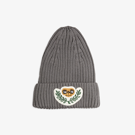 mini rodini / E.T patch knitted rib fold up hat / Grey