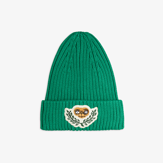 mini rodini / E.T patch knitted rib fold up hat / Green